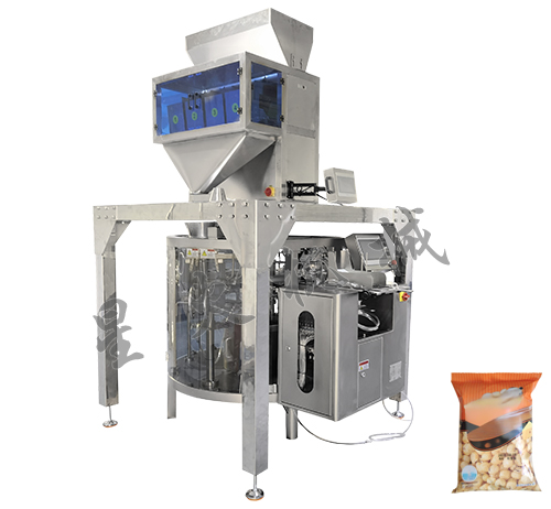 作为一台组合形式的机械设备,它集中了物料提升机、组合秤、给袋式包装机、工作平台等形成了联动生产操作,当操作者将物料倒入上料机之后,组合秤包装设备通过振动布料配置,能够使其物料均匀的分布,并将所需包装的物料提升至组合秤的料斗内。膨化食品包装机械的组合秤会根据预设的重量参数,通过多个称重料斗进行快速称重,并计算出极佳的组合形式,称重结束后,膨化食品会通过下料口进入制袋装置。随后,膨化食品包装机械将开始进入制袋、给袋、撑袋、充填、封口、打印、输出的全流程。组合秤包装设备整个工作过程全部都由PLC控制系统执行智能完成全部工作。技术参数:
